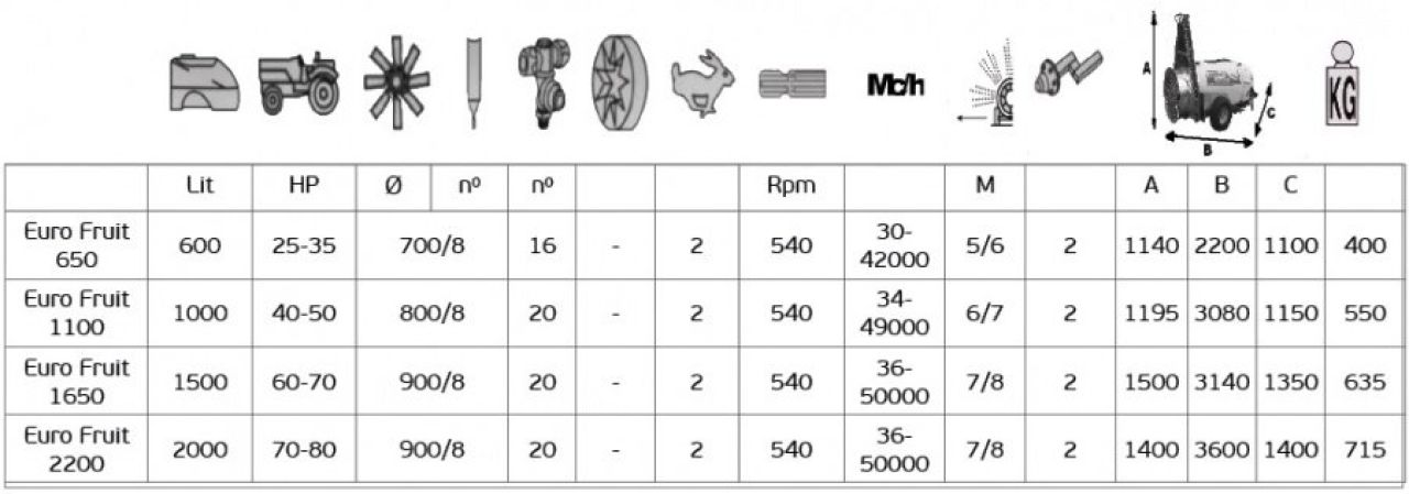 Sliding mist sprayer mod. EURO FRUIT with spray tower arboricultural